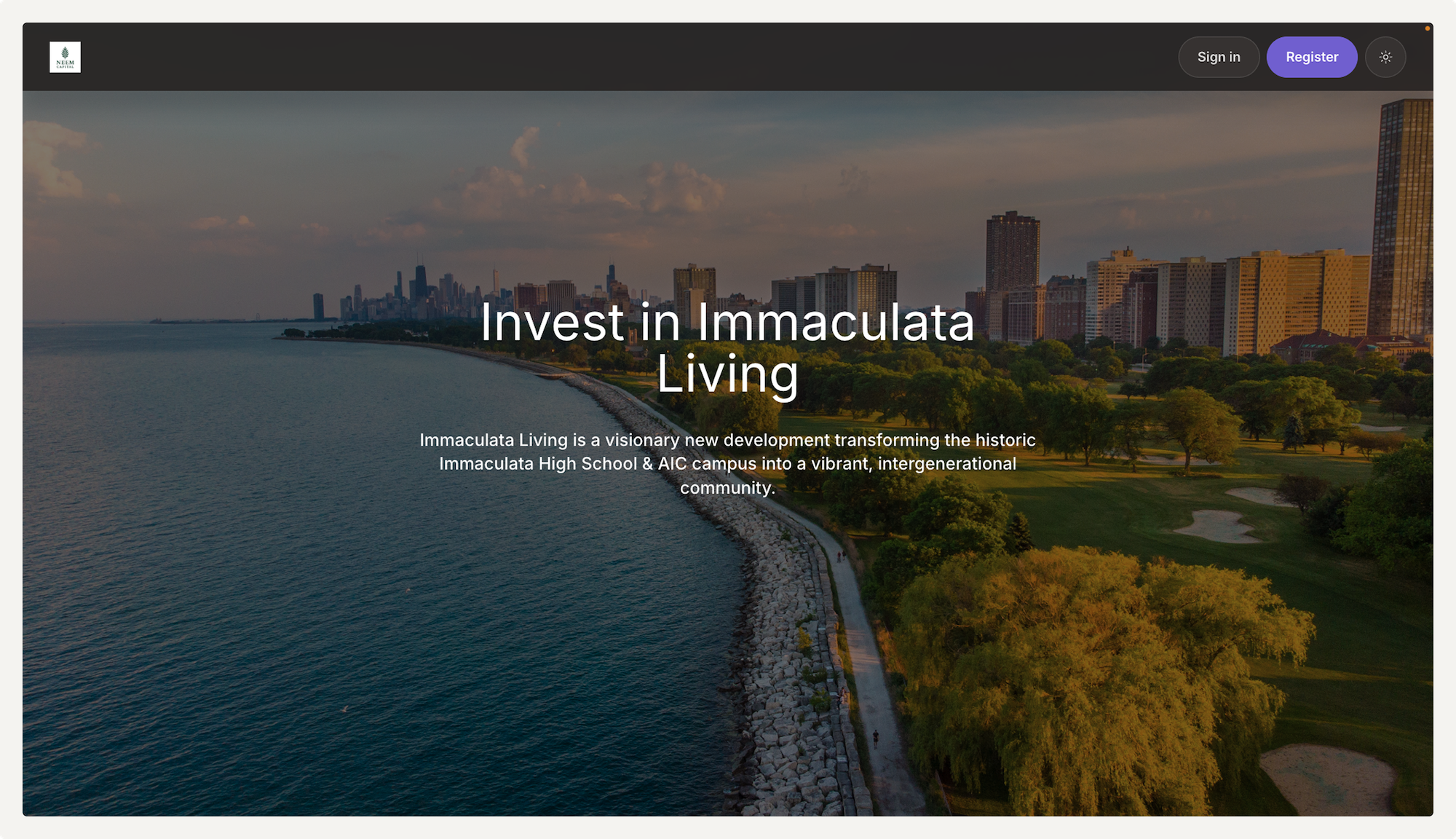 Immaculata Living is a collaboration between American Islamic College, KGiles LLC and Neem Capital. Token infrastructure and investment marketplace is powered by Evergon Labs. Compliance services are delivered by ComPilot directly integrated in the platform and customize by Neem Capital for the purpose of this project. Legal structuring is led by Croke Fairchild Duarte and Beres in Chicago.